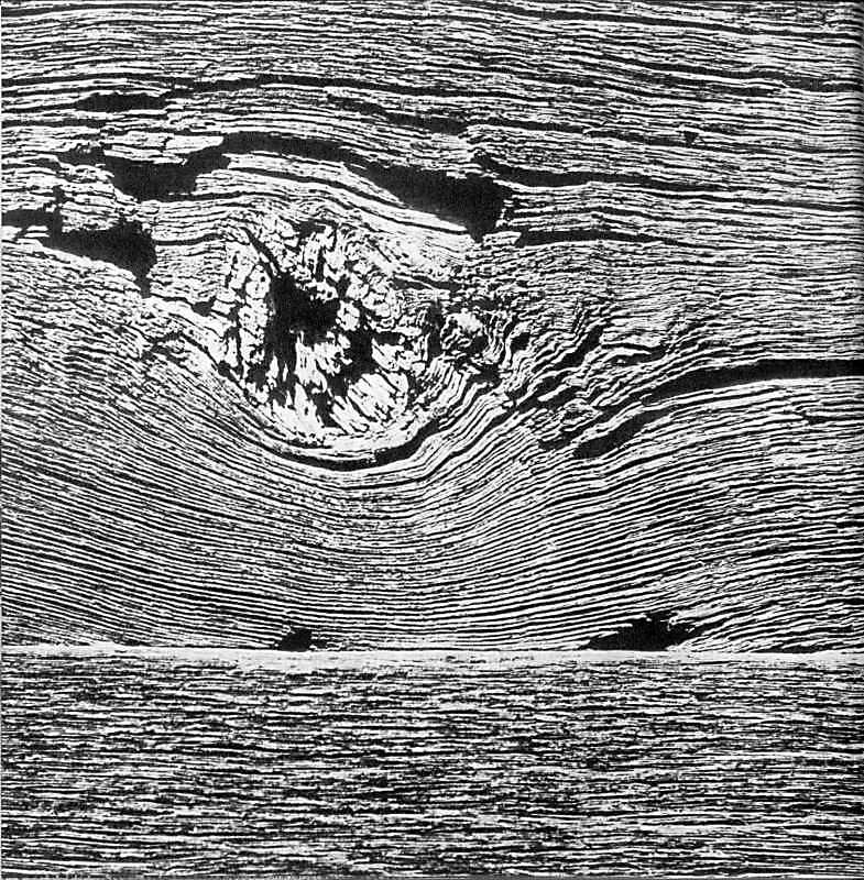 [1970 р.] Фактура клоди зрубуРозмір зображення: 785:800 піксел Джерело: Гоберман Д. Н. Памятники деревянного зодчества Закарпатья. – Ленинград: Аврора, 1970 г. |