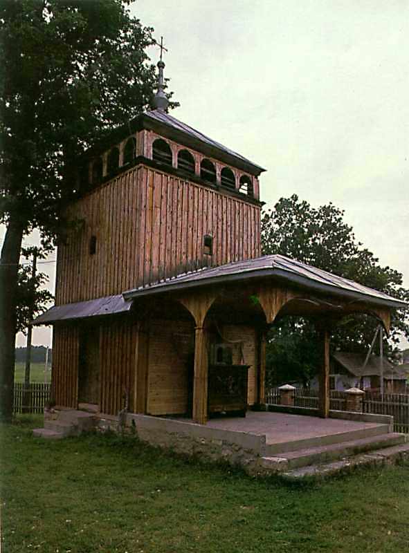[1987 р.] Загальний вигляд дзвіниціРозмір зображення: 591:800 піксел Джерело: Іванусів О. Церква в руїні. – St. Catharines, 1987, с. 270. |