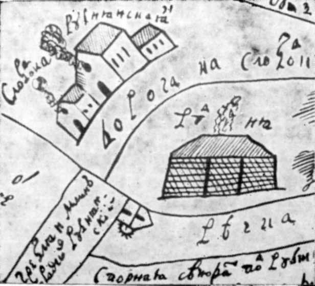 Гуты и рудни в с. Деменки на Черниговщине. Из плана 1732 г. в книге В. Модзалевского «Гути на Чернігівщині», Киів, 1926 (стр. 12)