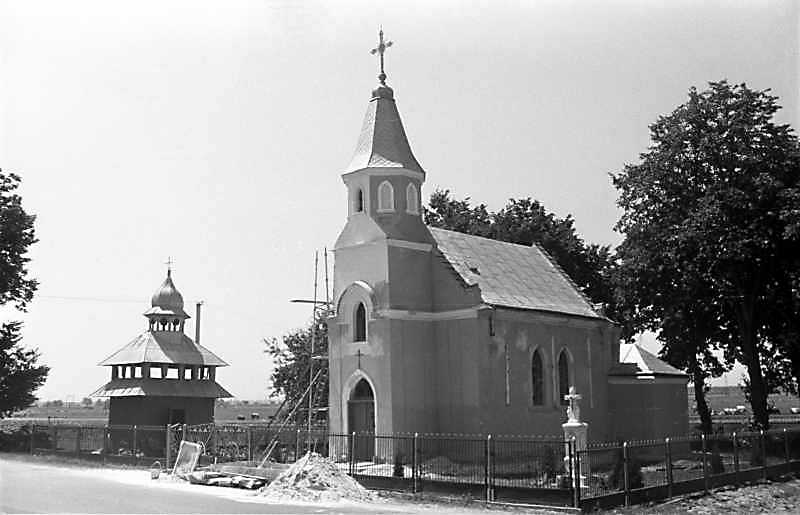 1989 р. Дзвіниця і костел. Вигляд з північного сходу