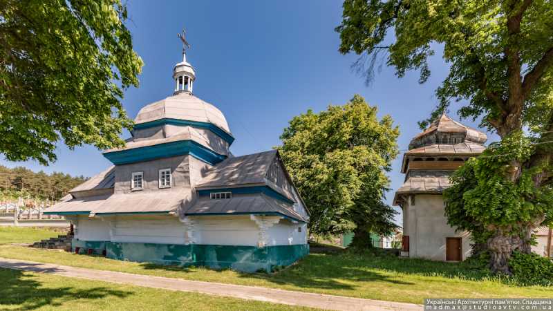 Церква Воскресеня Христового, деревяна, добра, під ґонтами, двері зі штучним замком. [Національний музей у Львові. Рукопис латинський in folio № 11 (Visitatio generalis ecclesiarum in palalinatu Bracławiensi 1726-1733), арк. 220]