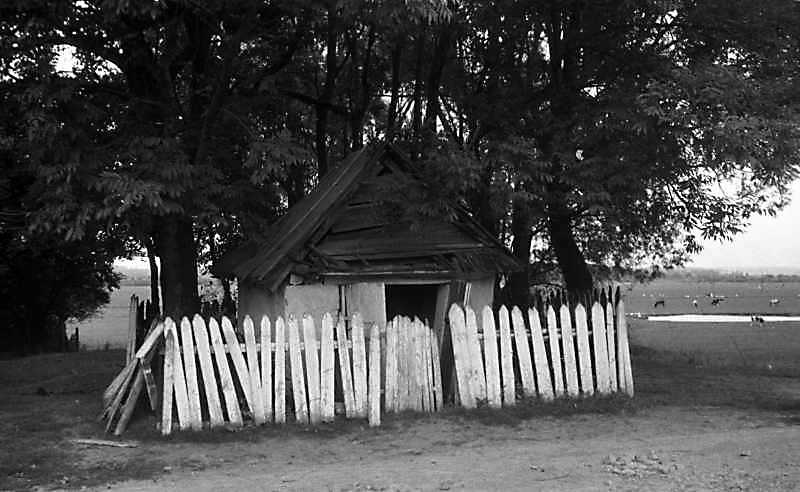 КаплицяРозмір зображення: 800:492 піксел 1989 р. 30 червня. Фото М.І.Жарких. Негатека, № 500-15. Каплиця (дерев.) розташована на головній вулиці (треба їхати від церкви в бік с.Кагуїв). Спостереження М.І.Жарких, 30.06.1989 р. |