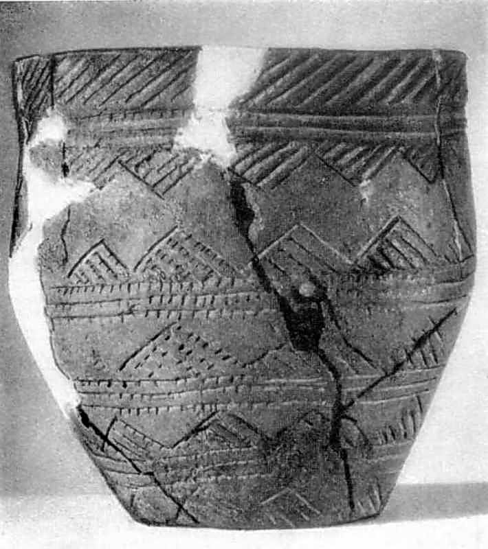 ГорщикРозмір зображення: 710:800 піксел Орнаментований глиняний посуд з Микільського могильника дніпро-донецької культури. Неоліт. Інститут археології АН УРСР. Джерело: Історія українського мистецтва. – К.: Наукова думка, 1966 р., т. 1, с. 39. |