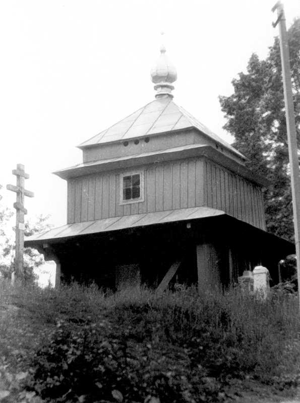1988 [?] р. Загальний вигляд дзвіниціРозмір зображення: 595:800 піксел Фото з архіву громадської експедиції “Дністер”, 1988..2000 рр. |