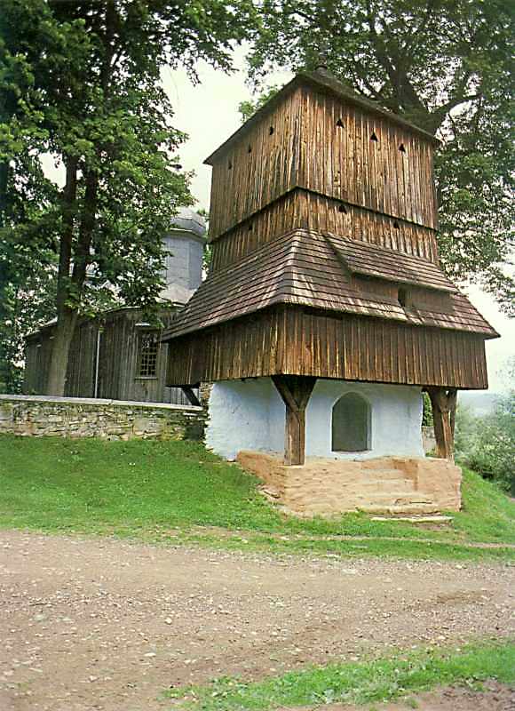 [1987 р.] Загальний вигляд дзвіниці з позиції А4Розмір зображення: 580:800 піксел Джерело: Іванусів О. Церква в руїні. – St. Catharines, 1987, с. 115. |