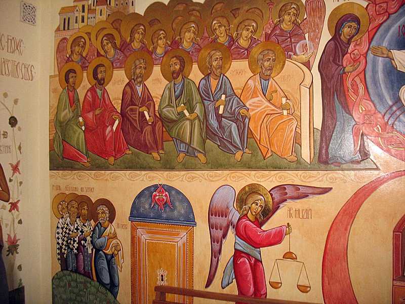 Сонм ангелівРозмір зображення: 800:600 піксел Нижче – пророки, праведники, архангел Михаїл з терезами. Фото Зенона Боровця, 11 лютого 2016 р. |