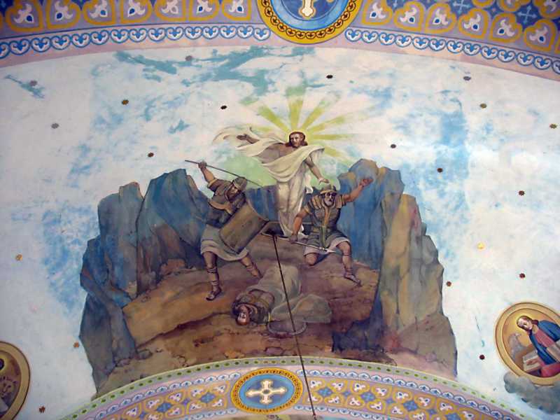 Стінопис «Воскресіння»Розмір зображення: 800:600 піксел На склепінні, вище арок. Фото Зенона Боровця, 3 червня 2012 р. |