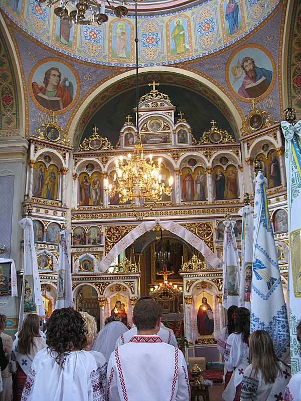 2008 р. Інтер’єр з видом на іконостасРозмір зображення: 600:800 піксел Фото Зенона Боровця і Богдана Тхора, 9 серпня 2008 р. |