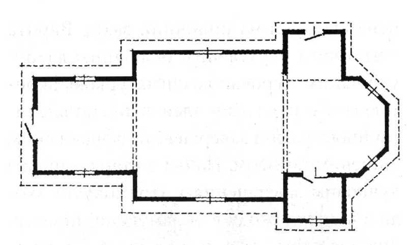 План церкви. За: Gorak J. Dawne cerkwie drewniane w wojewodztwie Zamojskim. - Zamosc, 1984.Розмір зображення: 800:482 піксел Джерело: Слободян В. Церкви Холмської єпархії. – Львів: Наукове товариство ім. Шевченка, 2005 р., с. 459. |