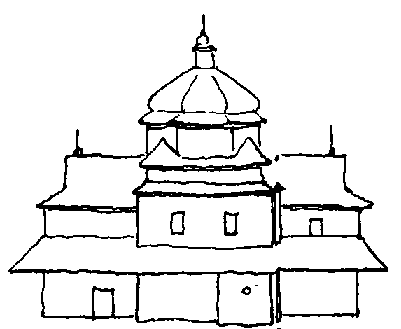 Схема фасадуРозмір зображення: 573:470 піксел Джерело: Драган М. Українські деревляні церкви. – Льв.: 1937 р., т. 2, с. 71. |