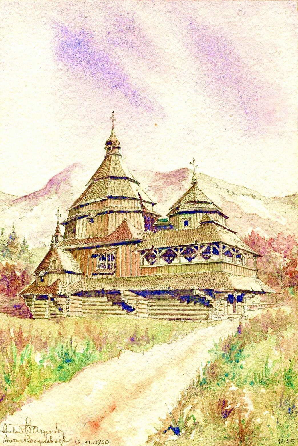 Церква св.Миколи (стара)Розмір зображення: 1044:1561 піксел Церква св.Миколи 1723 р. (дерев.), не збереглась [Народна архітектура українських Карпат. – К.: 1987 р., с. 226]. |