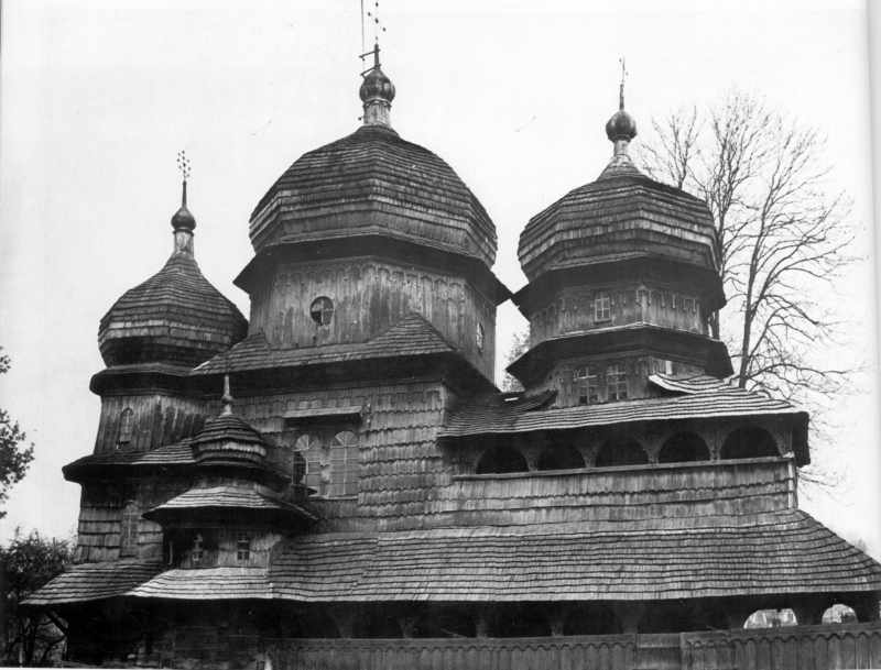 [1987 р.] Загальний вигляд з півночіРозмір зображення: 800:609 піксел Джерело: Titus D. Hewryk Masterpieces in wood: houses of worship in Ukraine. – New York, 1987, № 88. |