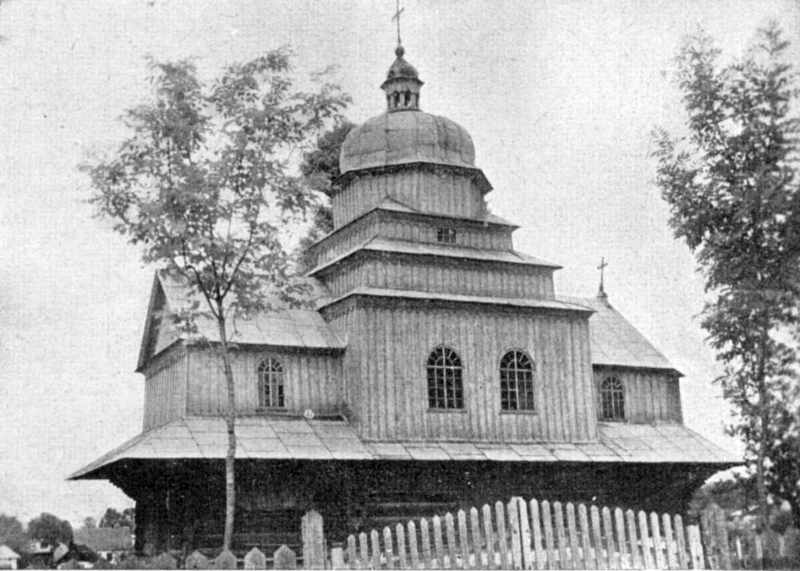 [1937 р.] Загальний виглядРозмір зображення: 800:571 піксел Церква 1795 р. (дерев.). Джерело: Драган М. Українські деревляні церкви. – Льв.: 1937 р., т. 2, с. 114. |
