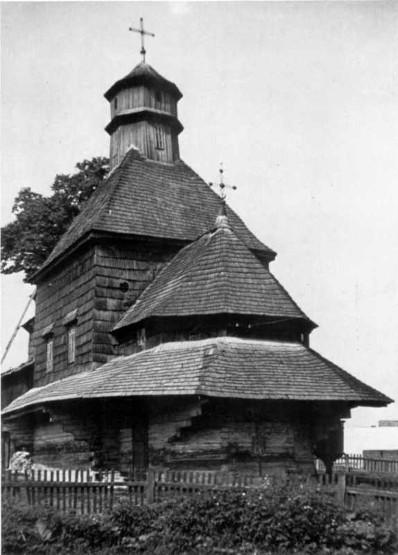 [1987 р.] Вигляд зі сходуРозмір зображення: 574:800 піксел Джерело: Titus D. Hewryk Masterpieces in wood: houses of worship in Ukraine. – New York, 1987, № 44. |