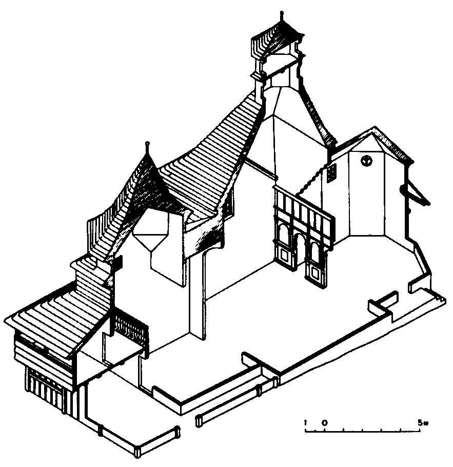 АксонометріяРозмір зображення: 883:910 піксел Джерело: Titus D. Hewryk Masterpieces in wood: houses of worship in Ukraine. – New York, 1987, № 45. |