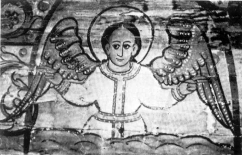 Стінопис 17 ст. АрхангелРозмір зображення: 800:514 піксел Джерело: Titus D. Hewryk Masterpieces in wood: houses of worship in Ukraine. – New York, 1987, № 57. |