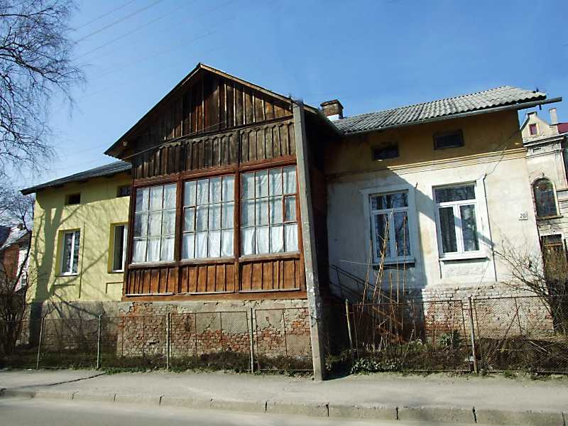 Житловий будинок (№ 20) Розмір зображення: 800:600 піксел 17 квітня 2013 р. Фото М.І.Жарких. Вкладені елементи 2013 р. Торцевий фасад (з боку вул. Міцкевича)