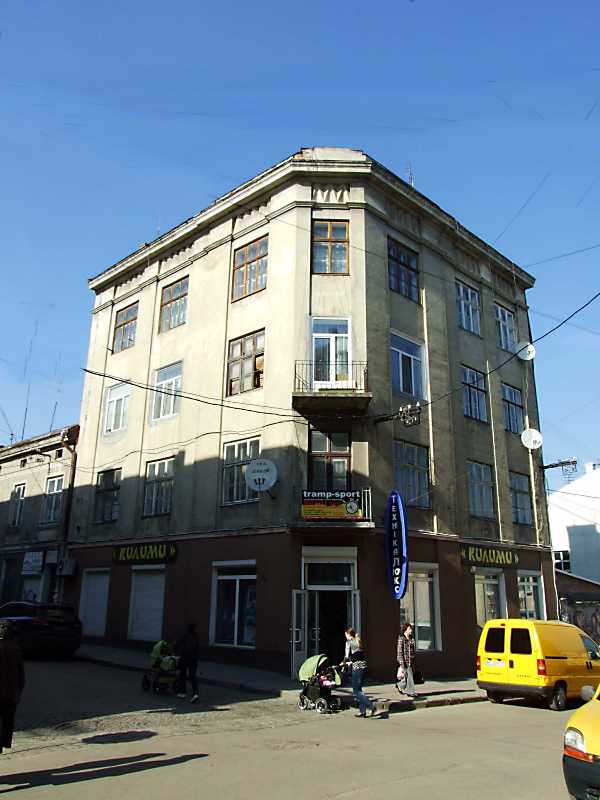 Житловий будинок (№ 5)Розмір зображення: 600:800 піксел Ліворуч – вулиця Шевська, праворуч – вулиця Мазепи. 17 квітня 2013 р. Фото М.І.Жарких. |
