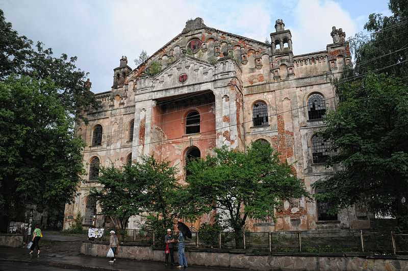 Синагога (№ 6)Розмір зображення: 800:531 піксел Хоральна синагога (вул.П.Орлика, 6) збудована в 1842 – 1865 рр. на єврейському передмісті (звалось Лан), за зразком синагоги у Касселі (1830 р.). (Сергій Криниця, 27.09.2012 р.) |