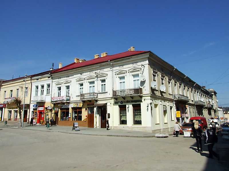 2013 р. Загальний виглядРозмір зображення: 800:600 піксел Ліворуч – східна перія площі Ринок, праворуч – вулиця І. Мазепи. 17 квітня 2013 р. Фото М.І.Жарких. |