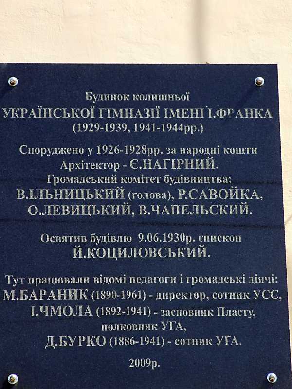 Будинок колишньої Української гімназії імені І. Франка (1929 – 1939, 1941 – 1944 рр.)