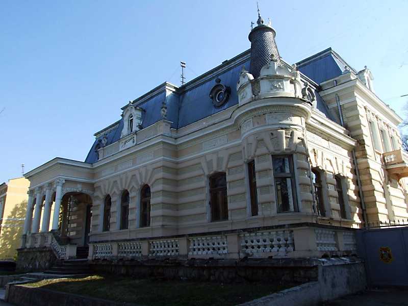 2013 р. Загальний вигляд Розмір зображення: 800:600 піксел 17 квітня 2013 р. Фото М.І.Жарких. Вкладені елементи Наріжна башточка Балкон на 2-у поверсі (бічний фасад)