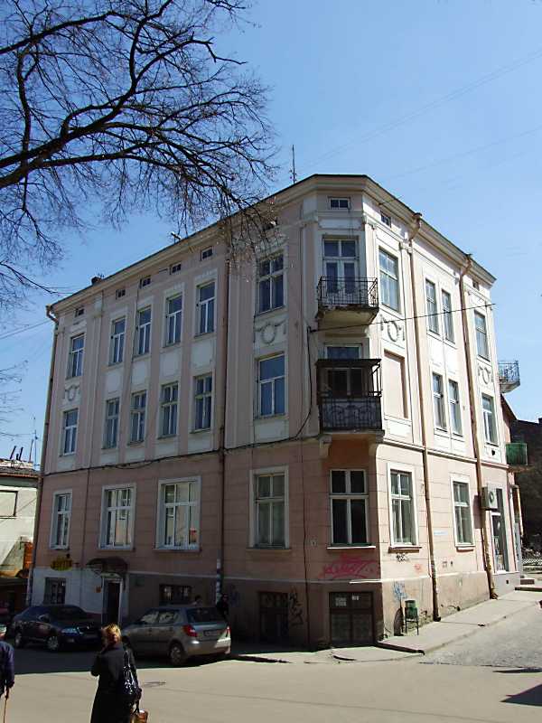 Житловий будинок (№ 3)Розмір зображення: 600:800 піксел Ліворуч – вулиця Т. Шевченка, праворуч – вулиця С. Бандери. 17 квітня 2013 р. Фото М.І.Жарких. |
