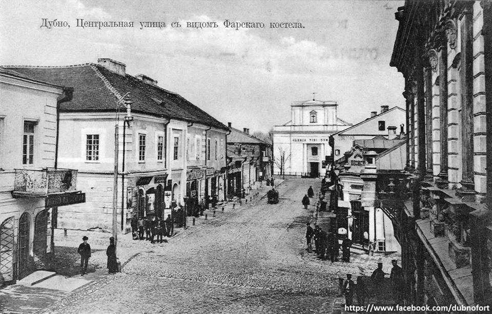 Поч. 20 ст. Вулиця з перспективою на костел (2)Розмір зображення: 960:613 піксел Російська поштівка поч. 20 ст. з альбому «Дубенський форт-застава» На поштівці вулиця названа Центральною, але не імп. Олександра 2-го. |