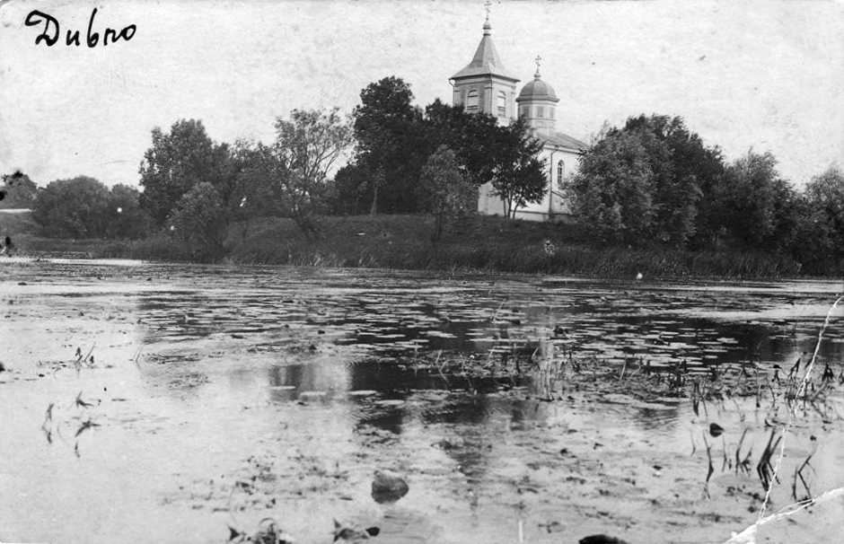 1930-і (?) рр. Загальний вигляд острова з церквоюРозмір зображення: 940:606 піксел Фото з польським написом, мабуть, 1930-х років, з альбому «Дубенський форт-застава» |