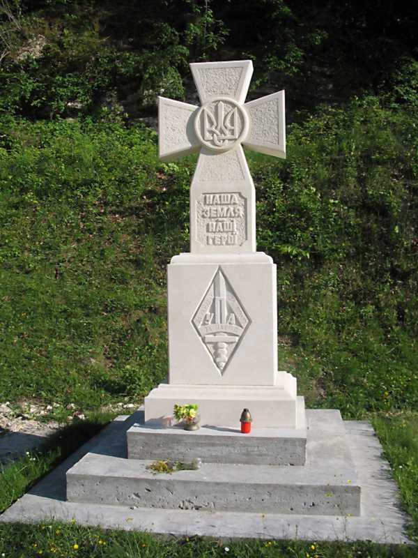 Хрест на постаментіРозмір зображення: 600:800 піксел Фото Зенона Боровця і Богдана Тхора, 18 травня 2013 р. Напис: «Наша земля – наші герої». |