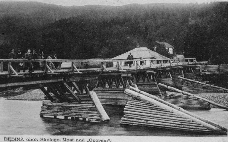 Міст через р. ОпірРозмір зображення: 800:499 піксел Дерев’яний міст через р. Опір у с. Дубина. Фото 1930-х років, надане нам І. Я. Чудійовичем. |