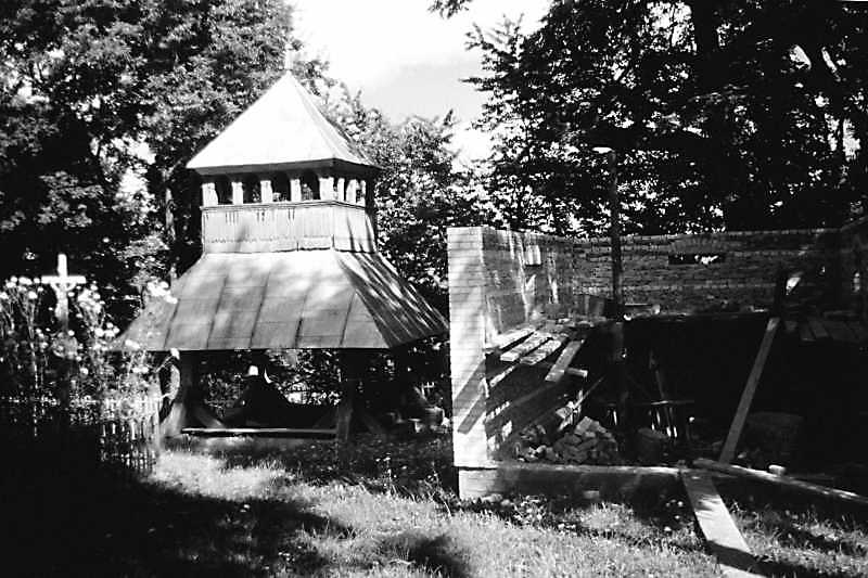 1990 р. Дзвіниця і каплиця (будується). Вигляд з півночіРозмір зображення: 800:533 піксел 1990 р. 12 серпня. Фото М.І.Жарких. Негатека, № 647-38. |