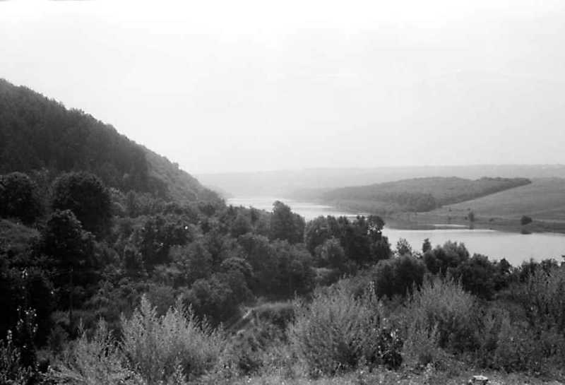 1991 р. Вид яру і Дністра біля с. ДзвенигородРозмір зображення: 800:545 піксел 1991 р. 21 липня. Фото М.І.Жарких. Негатека, № 693-03. |