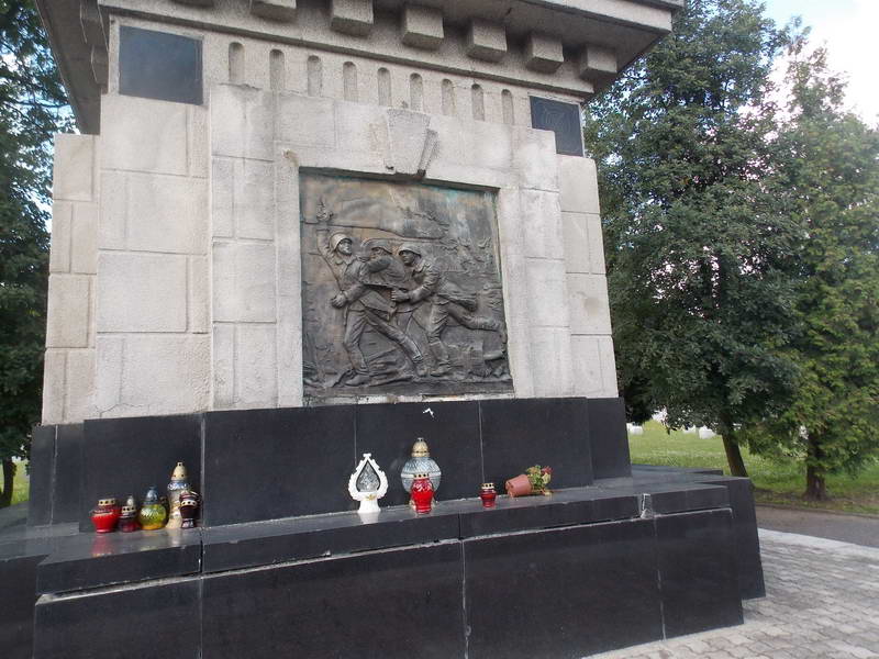 Радянський військовий цвинтар на вул. Агрикола в Ельблонгу. Фрагмент пам'ятника. Фото Івана Парнікози, 25 червня 2014 р.