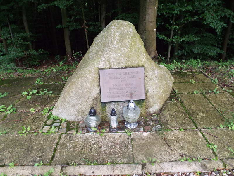 Місце поховання військовополонених та примусових працівників, що працювали в філіях німецького концентраційного табору «Штутхоф». Лісопарк «Проховня» коло Ельблонга. Серед жертв-українці. Фото Івана Парнікози, 1 серпня 2016 р.
