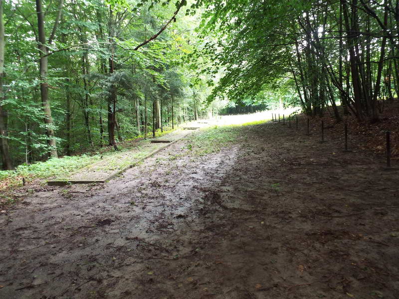 Місце поховання військовополонених та примусових працівників, що працювали в філіях німецького концентраційного табору «Штутхоф». Лісопарк «Проховня» коло Ельблонга. Серед жертв-українці. Фото Івана Парнікози, 1 серпня 2016 р.