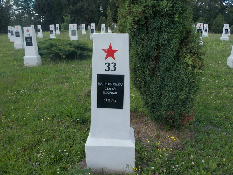 Радянський військовий цвинтар на вул. Агрикола в Ельблонгу. Могила Васильченка Сергія Іларіоновича, який загинув 29.02.1945 р. Фото Івана Парнікози, 25 червня 2014 р.