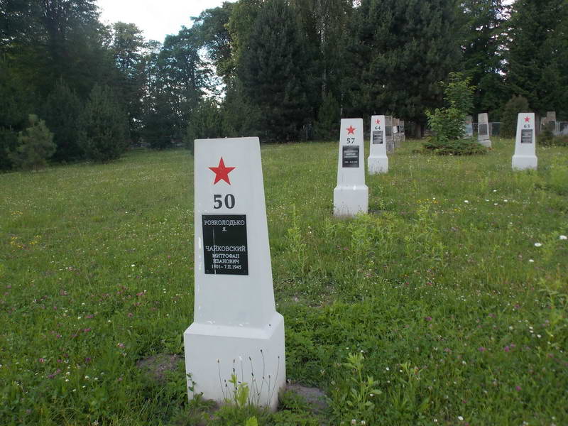 Радянський військовий цвинтар на вул. Агрикола в Ельблонгу. Могила Розколодька Я. та Чайковського Митрофана Івановича (1901-07.02.1945 р.). Фото Івана Парнікози, 25 червня 2014 р.