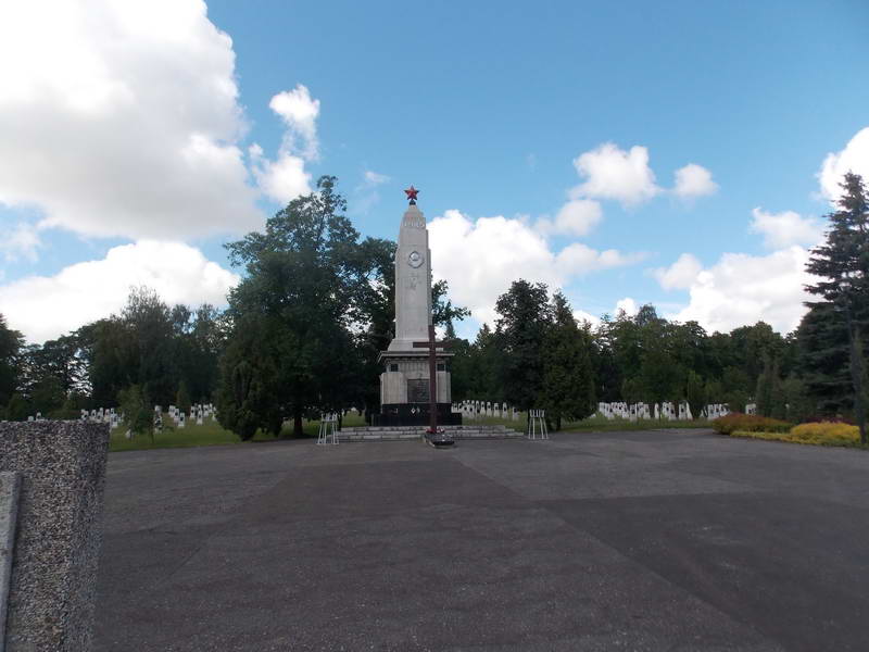 Радянський військовий цвинтар на вул. Агрикола в Ельблонгу. Загальний вигляд на пам'ятник. Фото Івана Парнікози, 25 червня 2014 р.