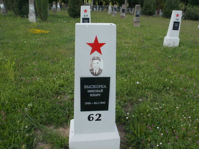 Могила Вискорки Миколи ІллічаРозмір зображення: 800:600 піксел Радянський військовий цвинтар на вул. Агрикола в Ельблонгу. Могила Вискорки Миколи Ілліча (1926-26.01.1945 р.). Фото Івана Парнікози, 25 червня 2014 р. Місце на карті Google: |