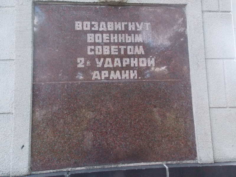 Радянський військовий цвинтар на вул. Агрикола в Ельблонгу. Фрагмент пам'ятника. Напис: зведений Військовою Радою 2-ї ударної армії. Фото Івана Парнікози, 25 червня 2014 р.