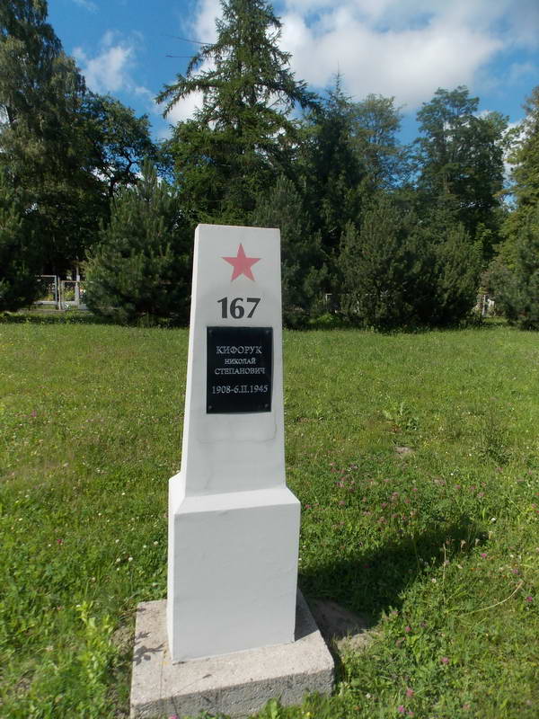 Радянський військовий цвинтар на вул. Агрикола в Ельблонгу. Могила Кифорука Миколи Степановича (1908-06.02.1945 р.). Фото Івана Парнікози, 25 червня 2014 р.