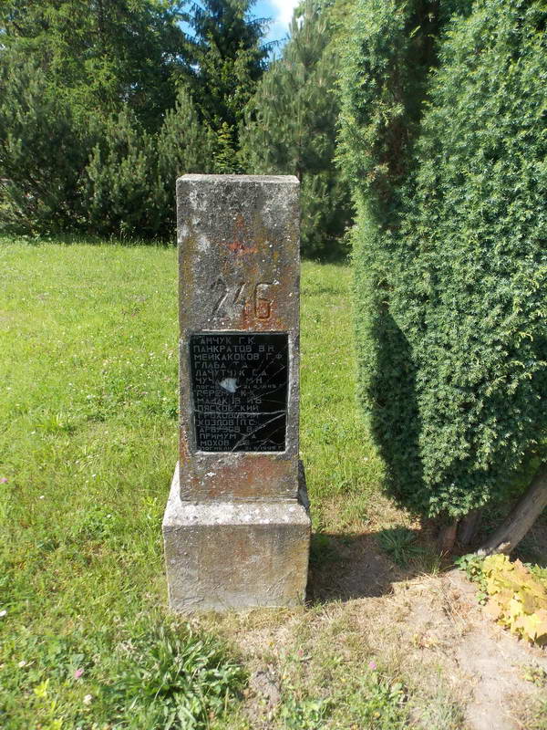 Радянський військовий цвинтар на вул. Агрикола в Ельблонгу. Могила Панчука Г.К., Панкратова В.Н., Глаби Т.А., Лачутчука С.А, Чучасина М.Н., що загинув 21.04.1945 р., Переми К.К., Малакова І.В., Пясковського, Гроховського, Примума С.А, Мохова А.В. загинули 21.06.1945 р. Фото Івана Парнікози, 25 червня 2014 р.