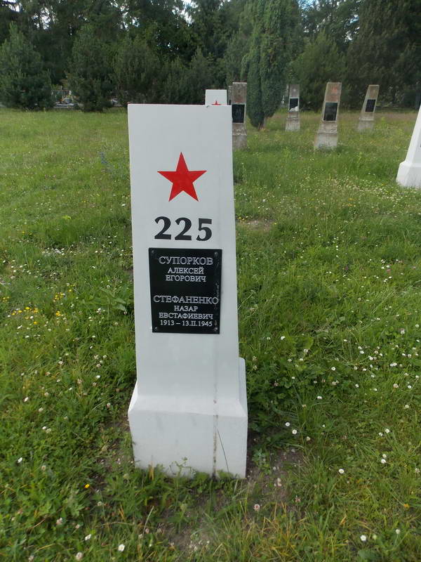 Радянський військовий цвинтар на вул. Агрикола в Ельблонгу. Могила Супоркова Олексія Єгоровича та Стефаненко Назара Євстафієвича. 1913-13.02.1945 р. Фото Івана Парнікози, 25 червня 2014 р.