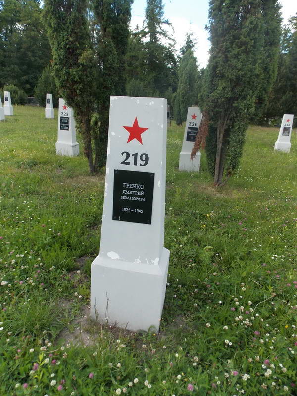 Могила Гречка Дмитра ІвановичаРозмір зображення: 600:800 піксел Радянський військовий цвинтар на вул. Агрикола в Ельблонгу. Могила Гречка Дмитра Івановича 1925-1945 р. Фото Івана Парнікози, 25 червня 2014 р. Місце на карті Google: |