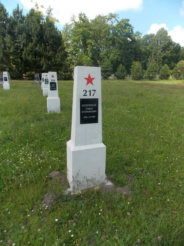 Могила Вовренюка Романа КуприяновичаРозмір зображення: 600:800 піксел Могила Вовренюка Романа Куприяновича (1926-03.05.1945 р.). Фото Івана Парнікози, 25 червня 2014 р. |
