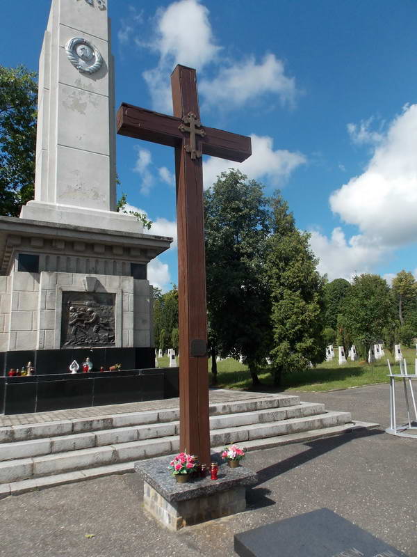 Радянський військовий цвинтар на вул. Агрикола в Ельблонгу. Хрест. Фото Івана Парнікози, 25 червня 2014 р.