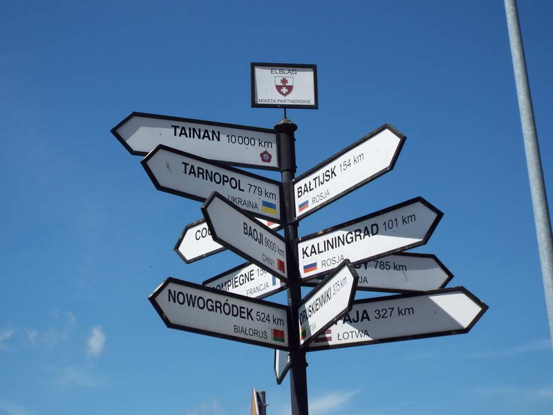 Вказівник відстаней до партнерських міст Ельблонга, серед яких український Тернопіль