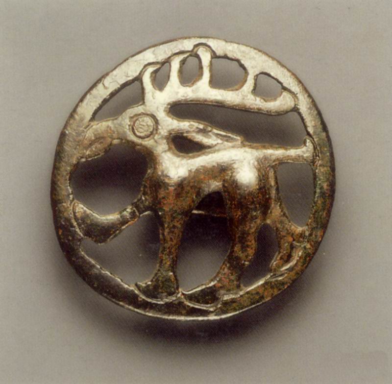 Мастерством стилизации отличается фигура оленя, превосходно вписанная в круглую рамку конского нащечника. Здесь традиционный скифский мотив трансформирован в манере меотского искусства IV века до н. э. Бросается в глаза подчеркнутая орнаментальность ажурной композиции, схематизм и плоскостность изображения. Акцент сделан на передаче видовых признаков животного и ритмике движения фигуры по кругу. Благодаря этому создается эффект вечного круговращения оленя, образ которого ассоциировался с солнцем.