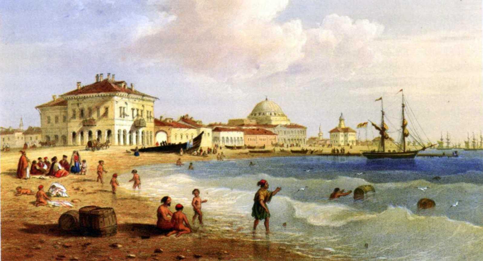 1853 р. Панорама ЄвпаторіїРозмір зображення: 1596:865 піксел Мал. К. Боссолі, 1853 р. [Гайворонський О. Країна Крим. – К.: Майстер книг, 2017 р., c. 253] |